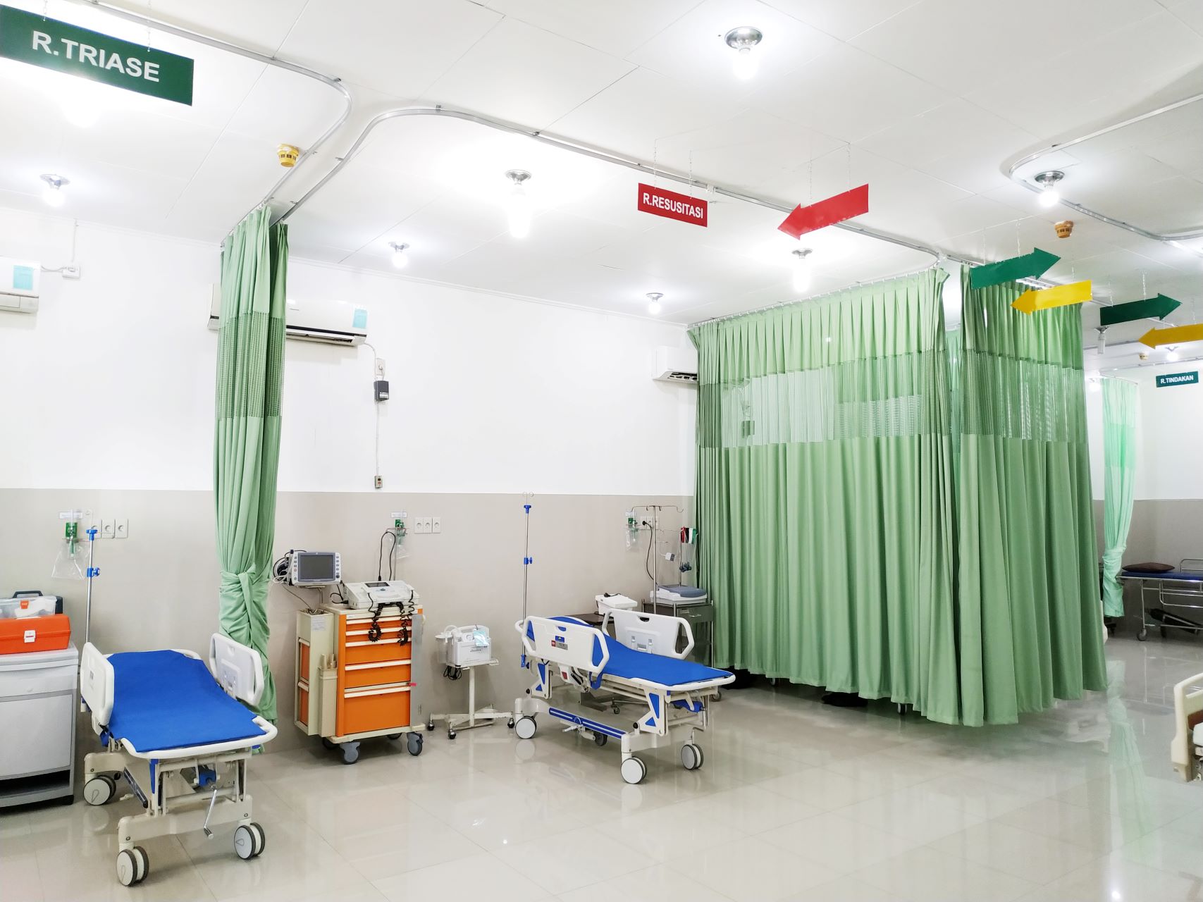 - Ada ruang dekontaminan di sebelah pintu masuk ruang gawat darurat